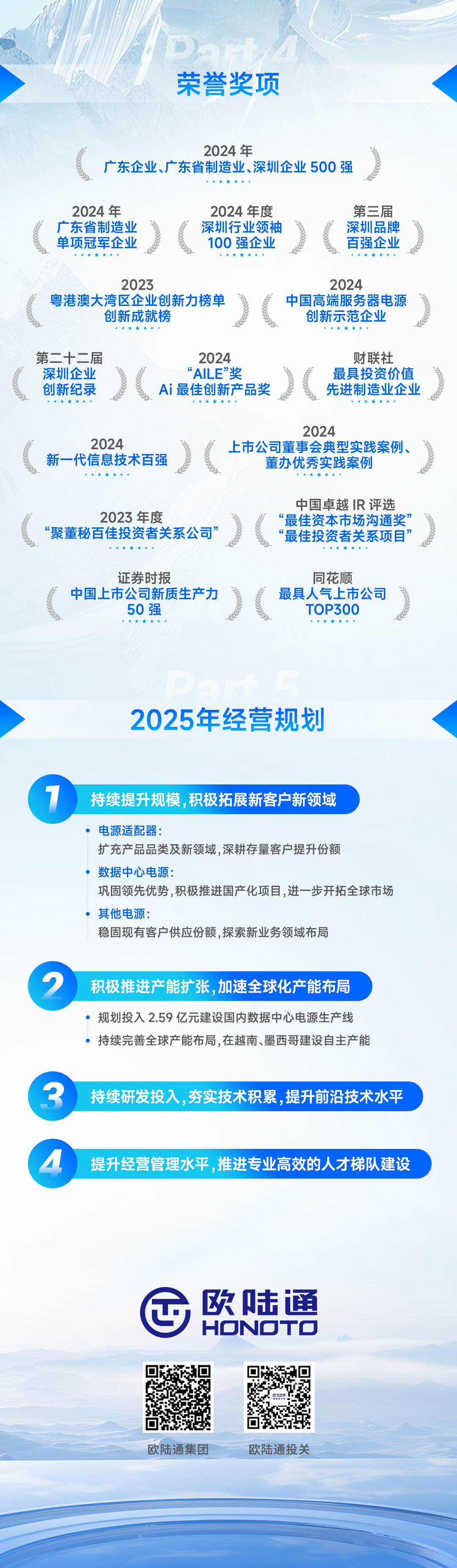 歐陸通公布2024年報及2025年一季報,盈利質量穩步提升,高功率服務器電源收入增長強勁
